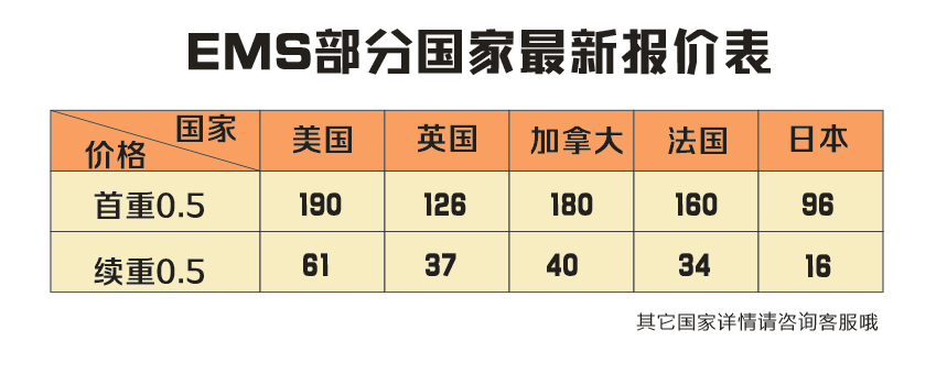 每家转运公司将无一幸免,被迫接受上涨调整。目前,EMS国际快递已经在涨价了,涨势较大的有美国、英国、加拿大、法国和日本等国家