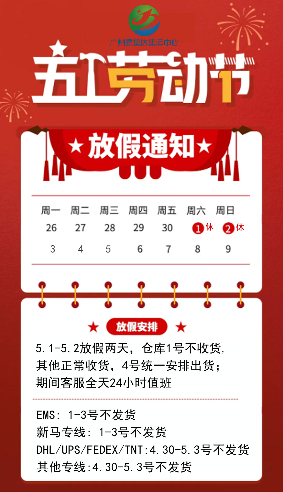 五一劳动节将至,感谢大家以来对易集达集运支持与关注,为了能够更好的服务大众,易集达特做以下安排: