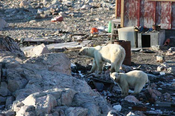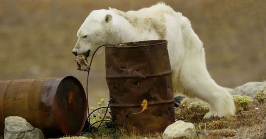 不断上升的气温和化石燃料的开采,迫使北极熊从冰川迁徙到了食物匮乏的海岸,在这种情况下,北极熊开始同类相食。