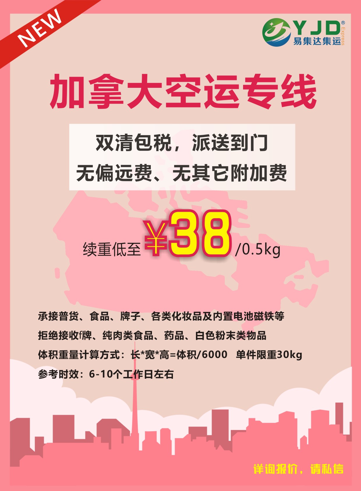 加拿大空运1kg起收 分普通和敏感货