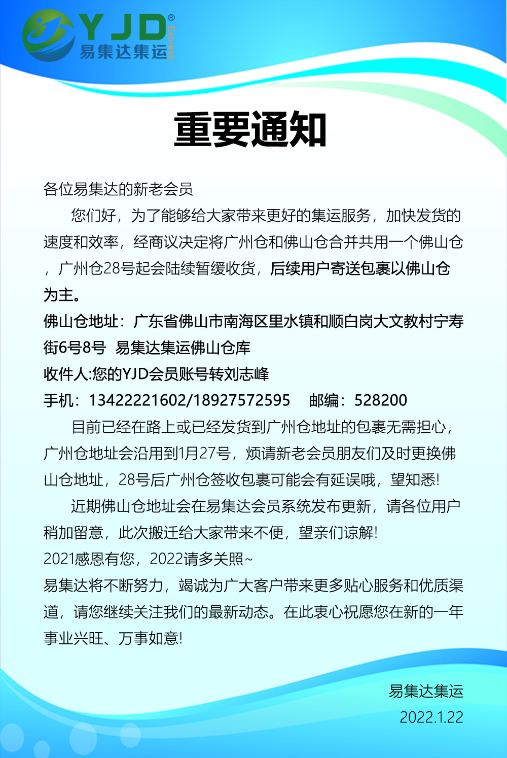 易集达重要通知