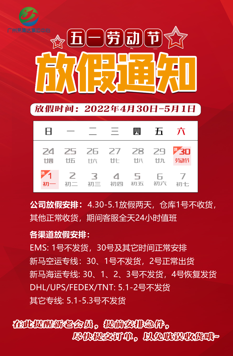 易集达2022年五一放假通知