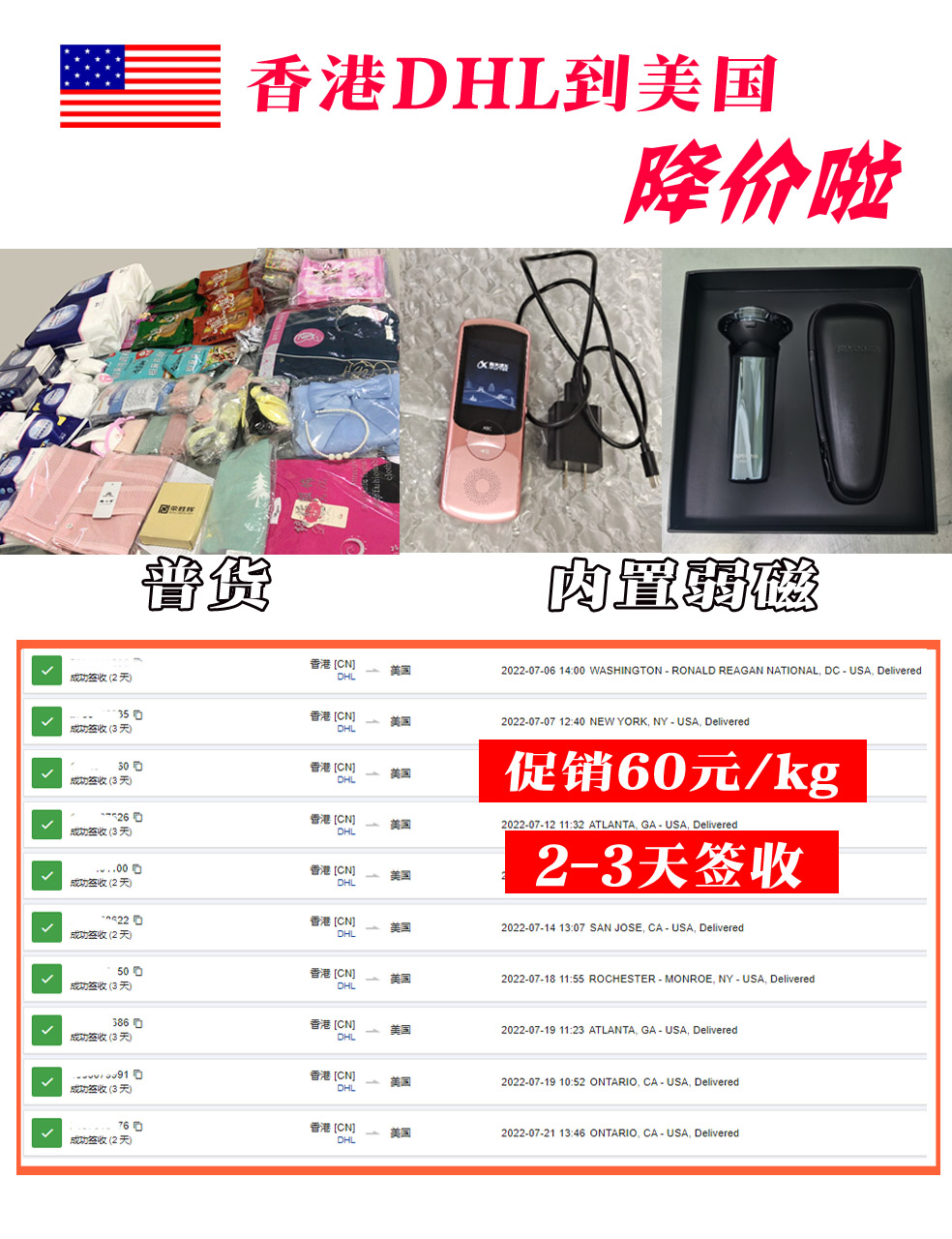 可接普货、内置配套电池 成人用品也可以寄