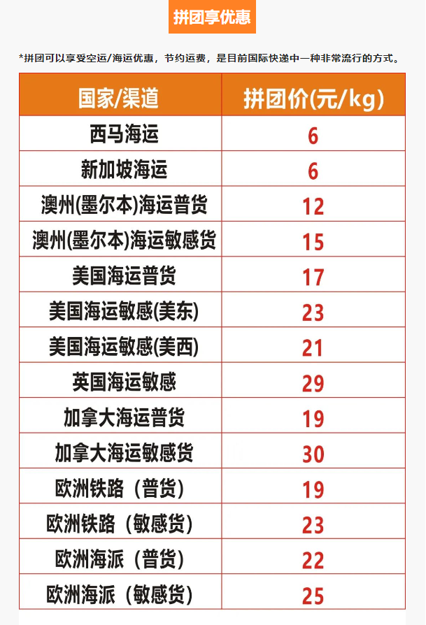 拼团可以享受空运/海运优惠,节约运费,是目前国际快递中一种非常流行的方式
